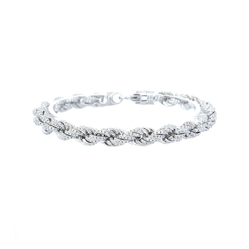 FABLE; The FABLE CZ Rhodium Moissanite Iced Out Bracelet is a stunning accessory, perfect for adding a touch of elegance and sophistication to any outfit. Its rhodium plating ensures durability and a brilliant shine, while the Moissanite stones offer superior sparkle and brilliance, rivaling diamonds. Ideal for special occasions or everyday wear, this bracelet is hypoallergenic and resistant to tarnish, ensuring long-lasting beauty and comfort.