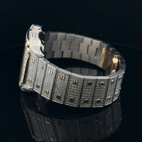 ENGIMA STEEL SILVER GOLD MOISSANITE WATCH ICED OUT I 5900642